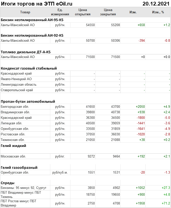 Итоги торгов на ЭТП eOil.ru 20 декабря 2021