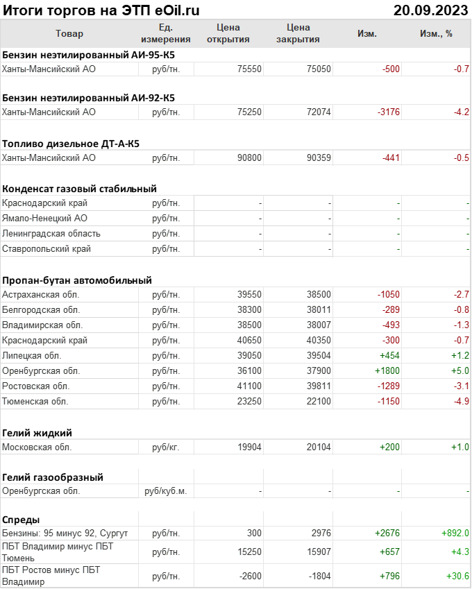 Итоги торгов на ЭТП eOil.ru 20 сентября 2023