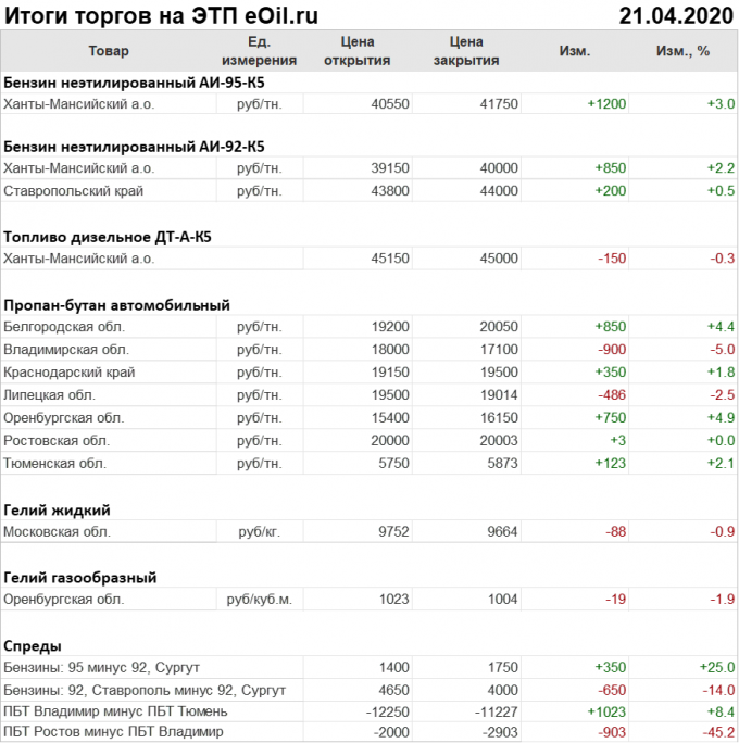Итоги торгов на ЭТП eOil.ru 21 апреля 2020