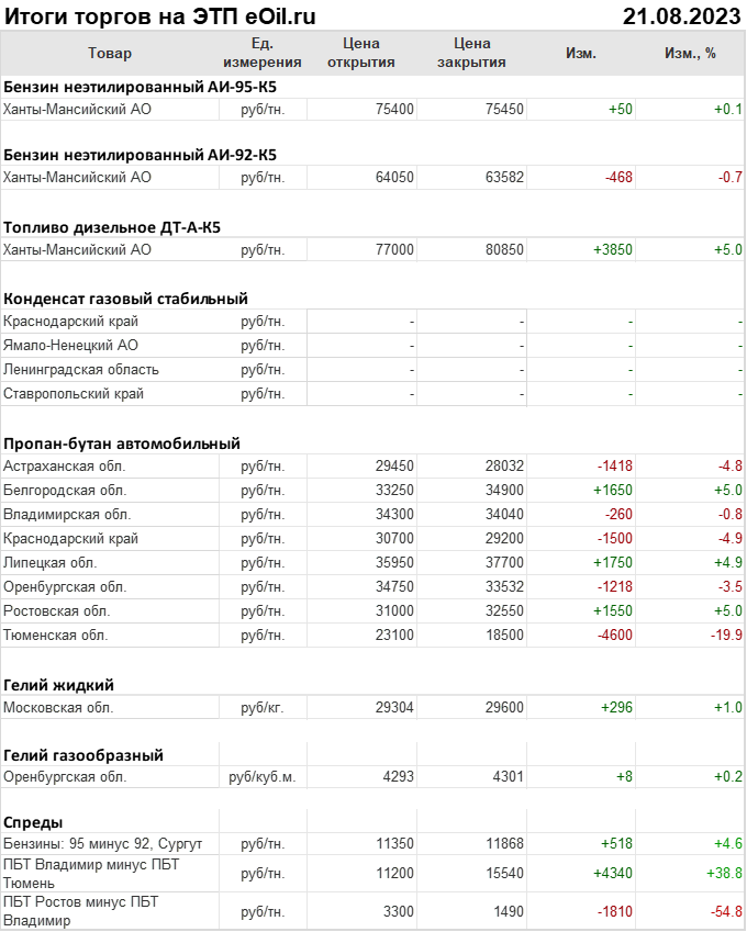 Итоги торгов на ЭТП eOil.ru 21 августа 2023