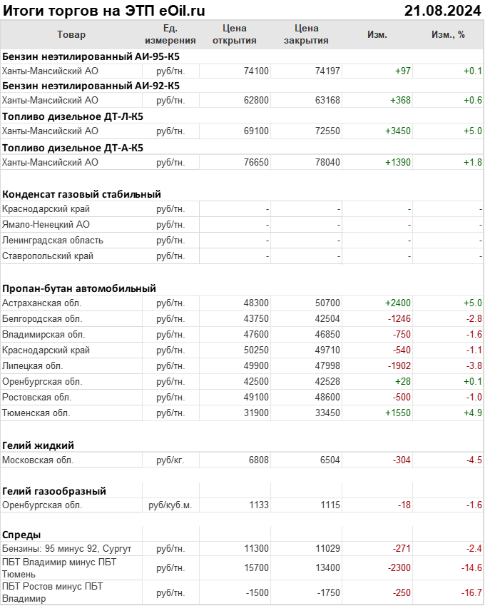 Итоги торгов на ЭТП eOil.ru 21 августа 2024