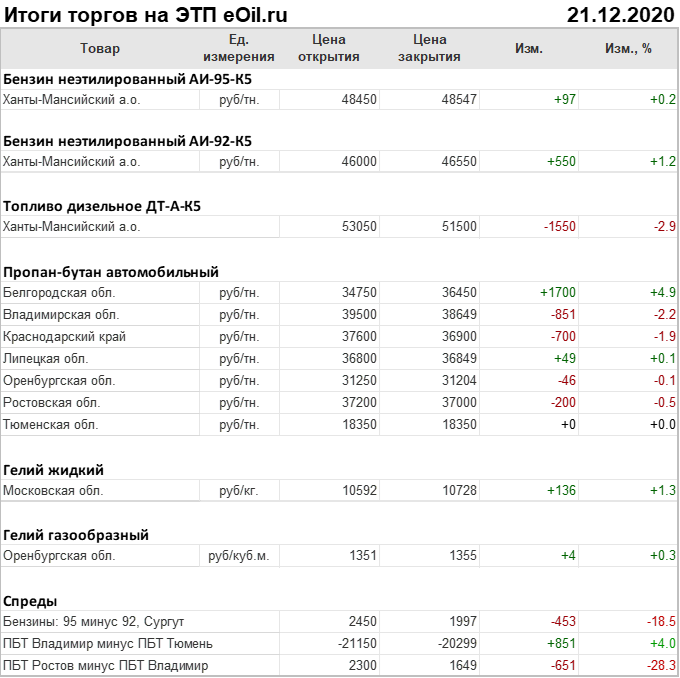 Итоги торгов на ЭТП eOil.ru 21 декабря 2020