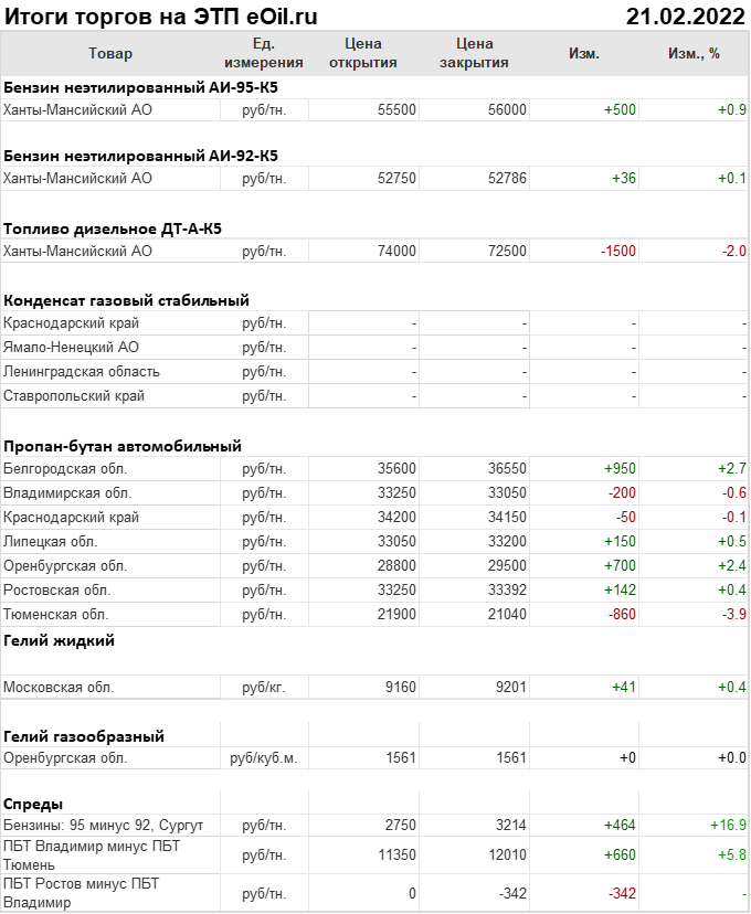 Итоги торгов на ЭТП eOil.ru 21 февраля 2022