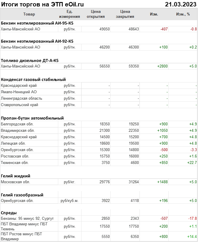Итоги торгов на ЭТП eOil.ru 21 марта 2023
