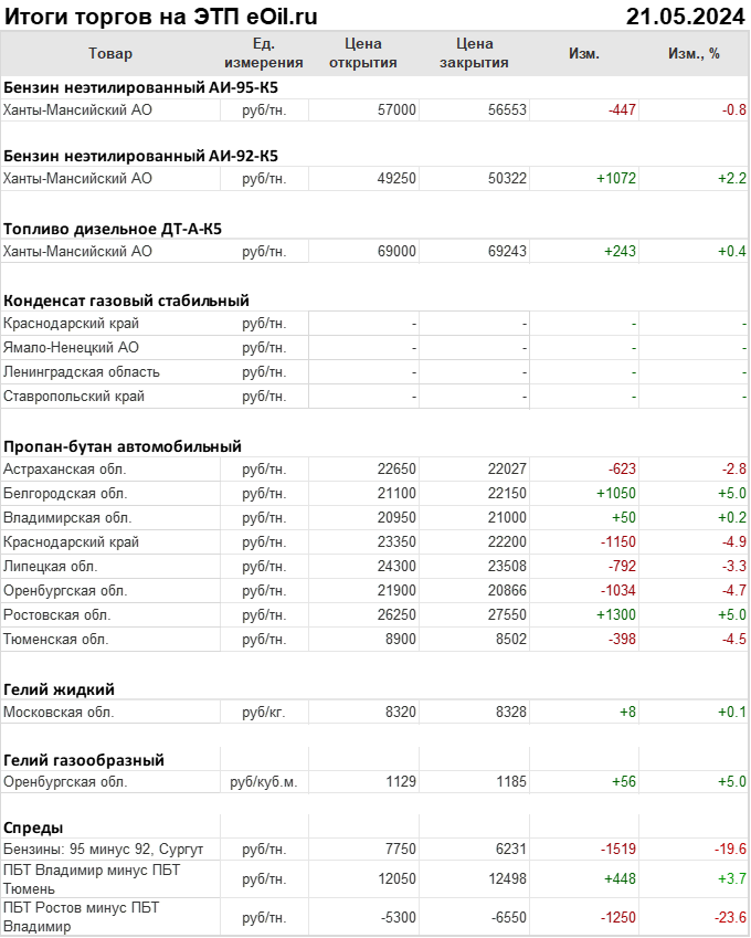 Итоги торгов на ЭТП eOil.ru 21 мая 2024