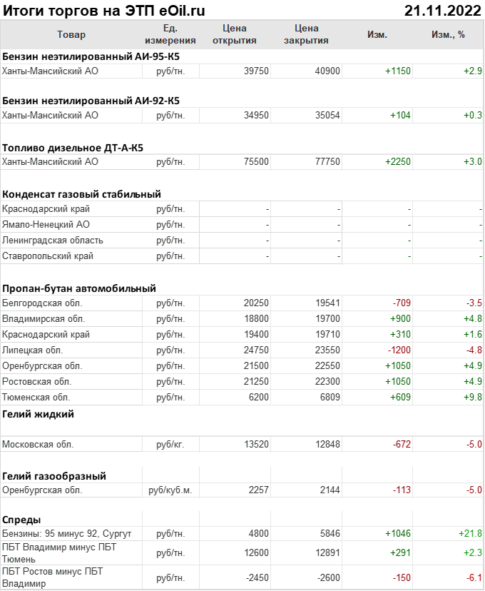 Итоги торгов на ЭТП eOil.ru 21 ноября 2022