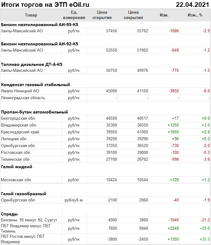 Итоги торгов на ЭТП eOil.ru 22 апреля 2021