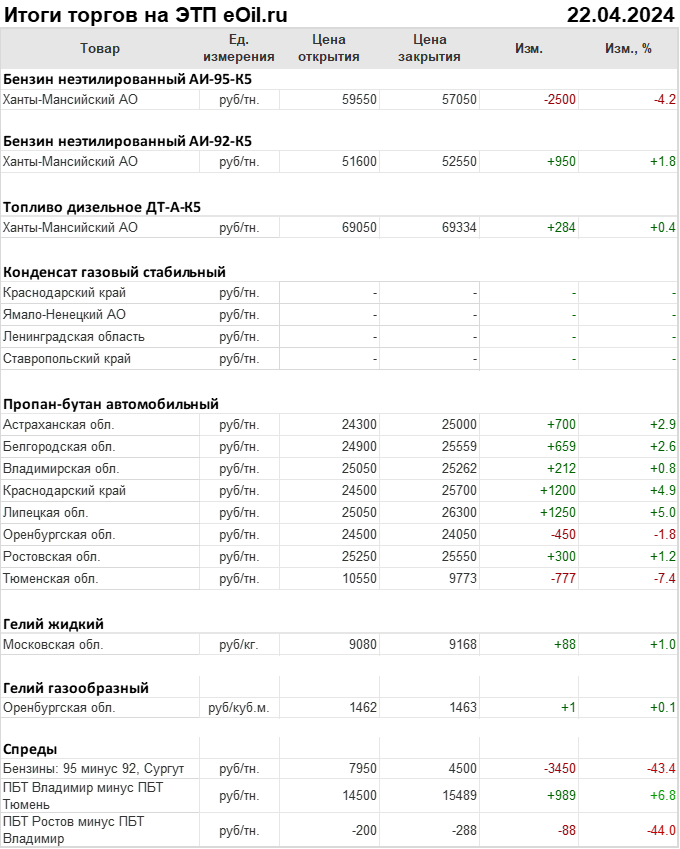 Итоги торгов на ЭТП eOil.ru 22 апреля 2024