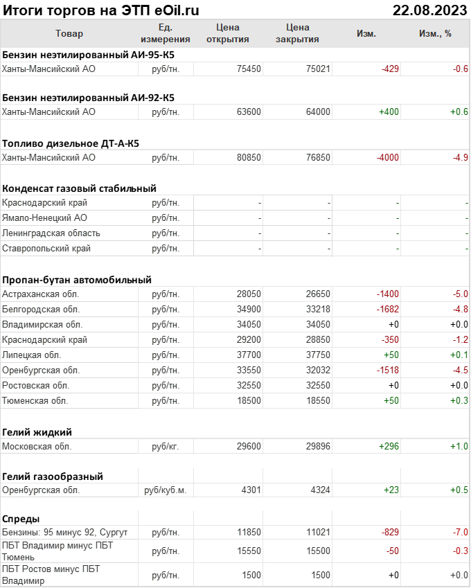 Итоги торгов на ЭТП eOil.ru 22 августа 2023