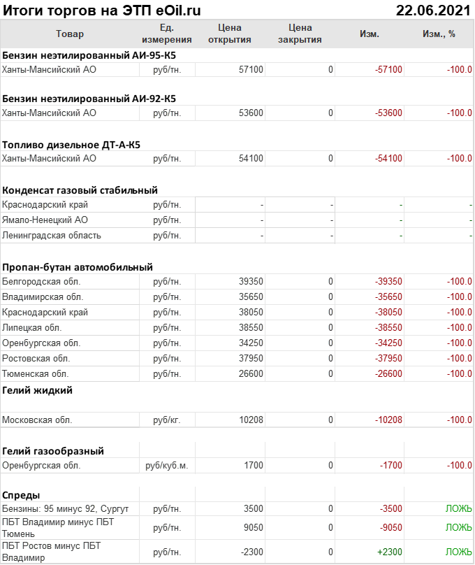 Итоги торгов на ЭТП eOil.ru 22 июня 2021