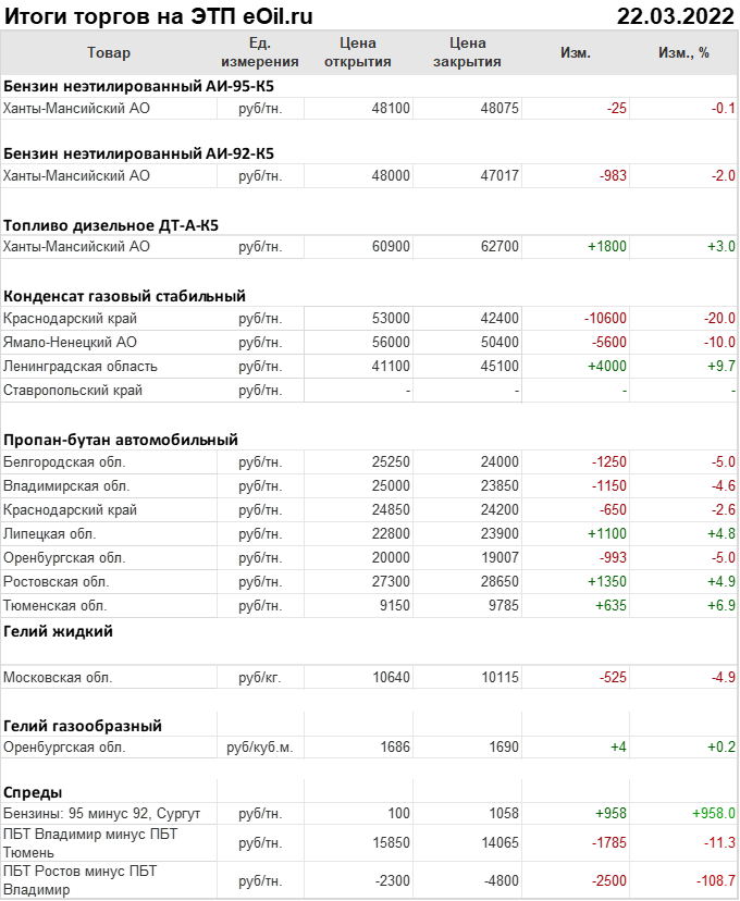 Итоги торгов на ЭТП eOil.ru 22 марта 2022