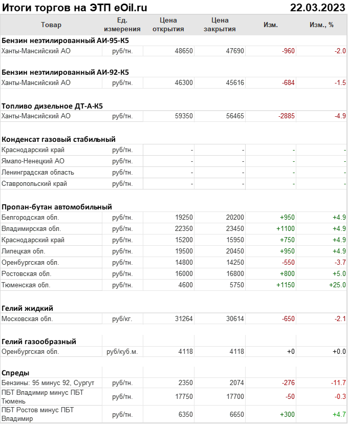 Итоги торгов на ЭТП eOil.ru 22 марта 2023
