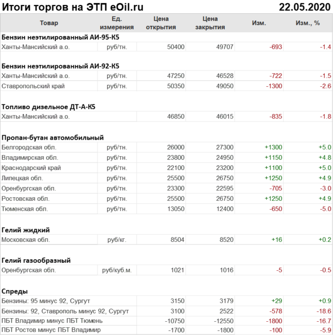 Итоги торгов на ЭТП eOil.ru 22 мая 2020