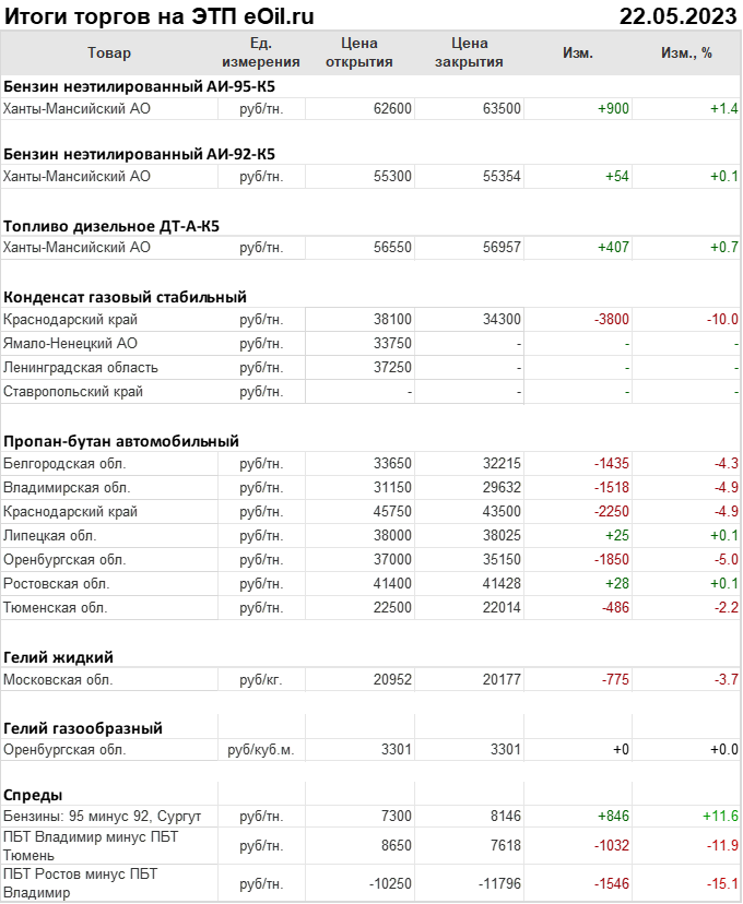 Итоги торгов на ЭТП eOil.ru 22 мая 2023