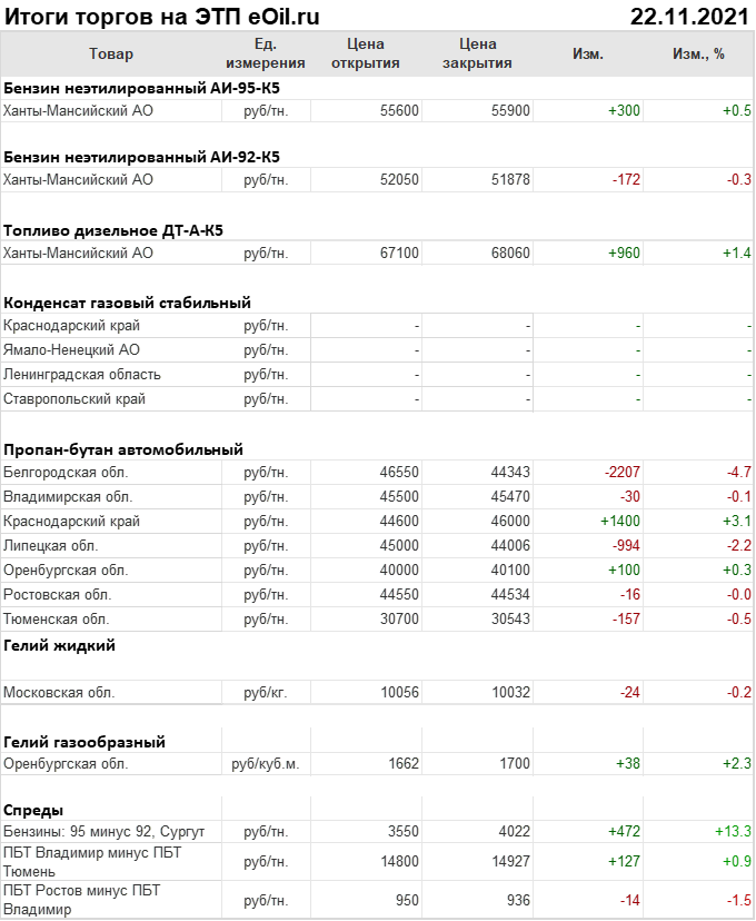 Итоги торгов на ЭТП eOil.ru 22 ноября 2021