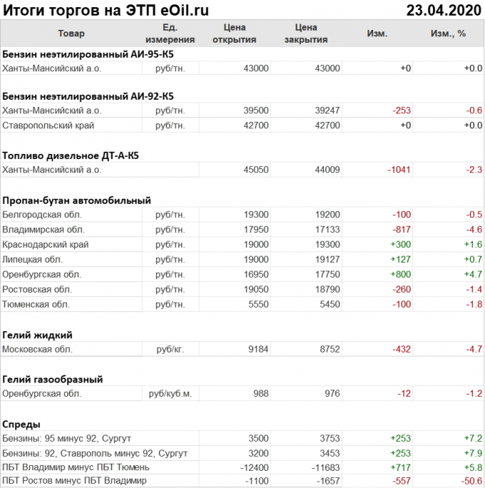 Итоги торгов на ЭТП eOil.ru 23 апреля 2020