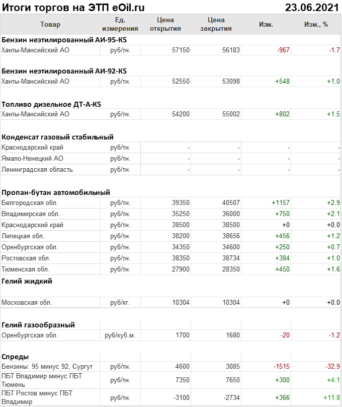 Итоги торгов на ЭТП eOil.ru 23 июня 2021