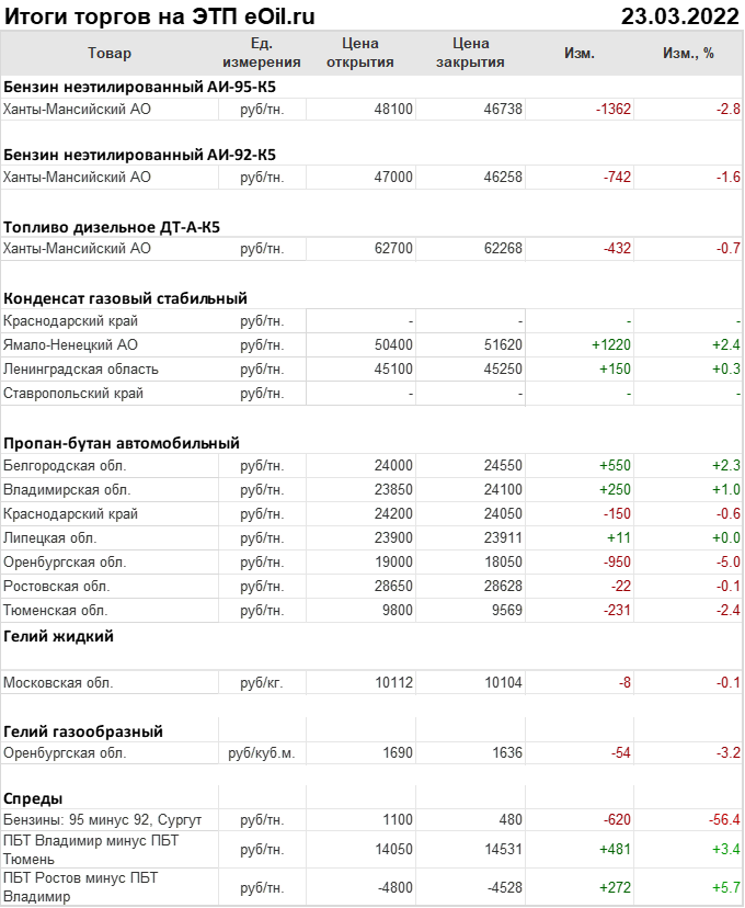 Итоги торгов на ЭТП eOil.ru 23 марта 2022