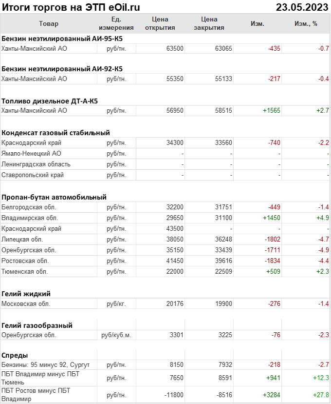 Итоги торгов на ЭТП eOil.ru 23 мая 2023