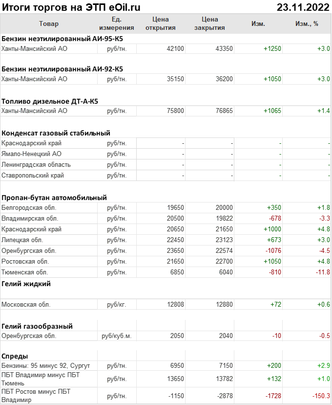 Итоги торгов на ЭТП eOil.ru 23 ноября 2022