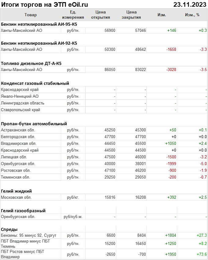 Итоги торгов на ЭТП eOil.ru 23 ноября 2023