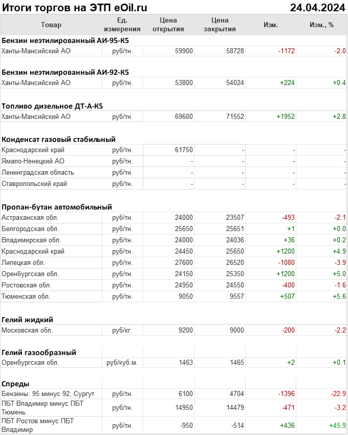 Итоги торгов на ЭТП eOil.ru 24 апреля 2024