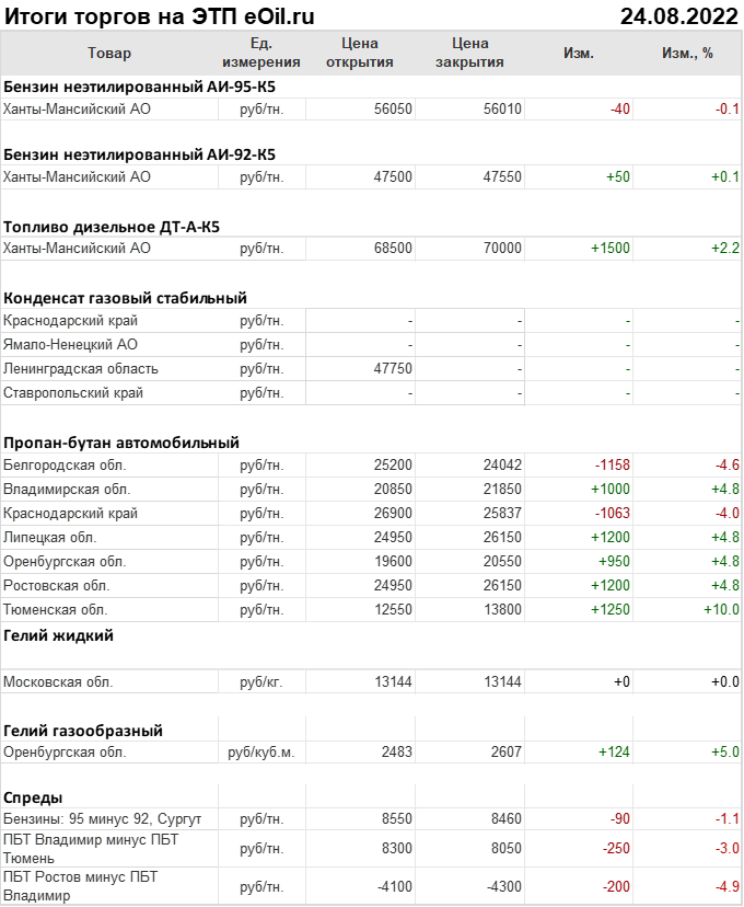 Итоги торгов на ЭТП eOil.ru 24 августа 2022