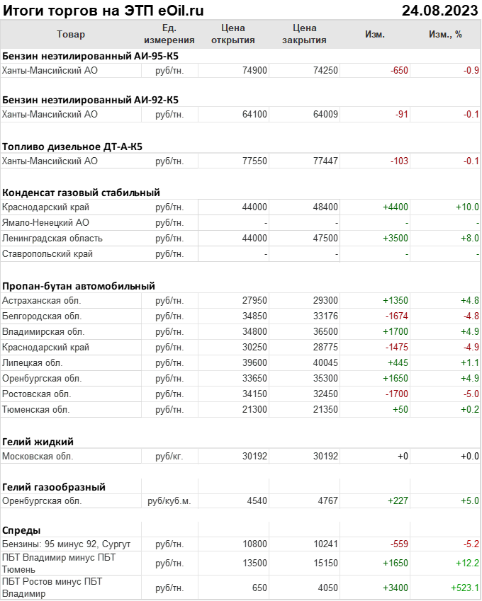 Итоги торгов на ЭТП eOil.ru 24 августа 2023