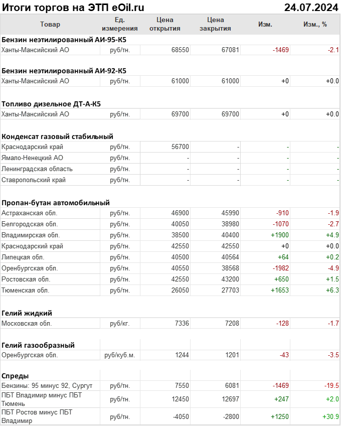Итоги торгов на ЭТП eOil.ru 24 июля 2024