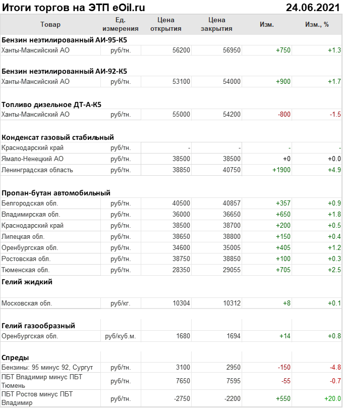 Итоги торгов на ЭТП eOil.ru 24 июня 2021