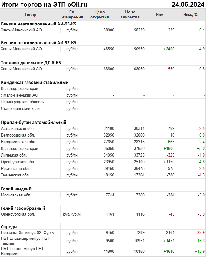 Итоги торгов на ЭТП eOil.ru 24 июня 2024