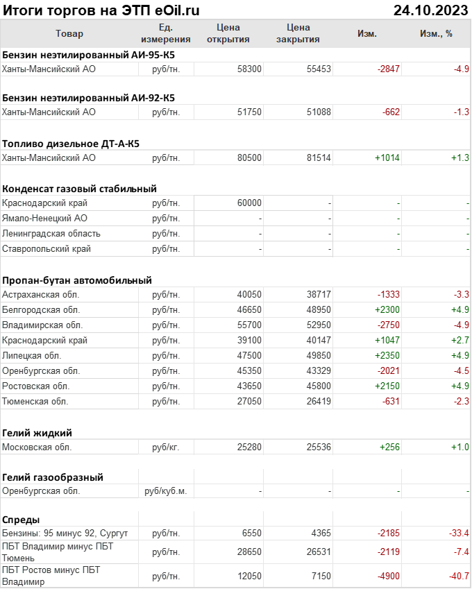Итоги торгов на ЭТП eOil.ru 24 октября 2023