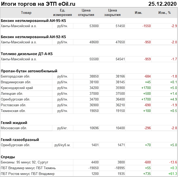 Итоги торгов на ЭТП eOil.ru 25 декабря 2020