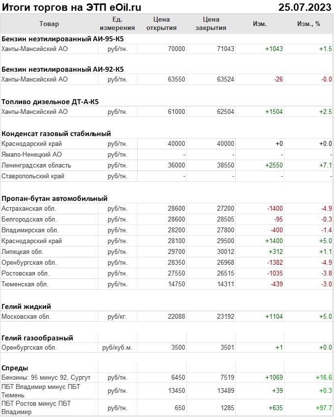 Итоги торгов на ЭТП eOil.ru 25 июля 2023