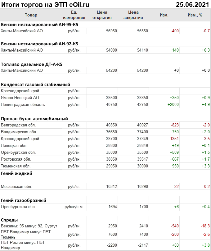Итоги торгов на ЭТП eOil.ru 25 июня 2021