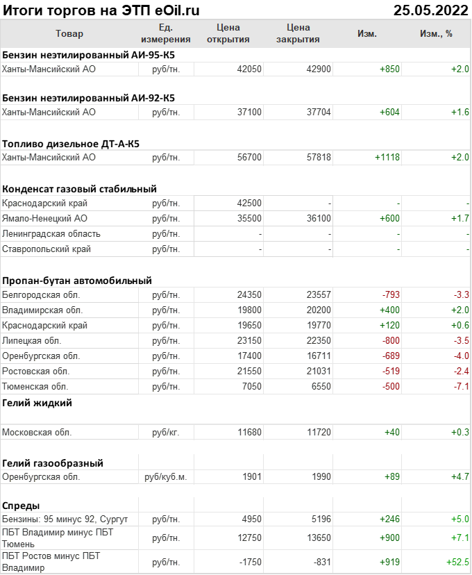 Итоги торгов на ЭТП eOil.ru 25 мая 2022