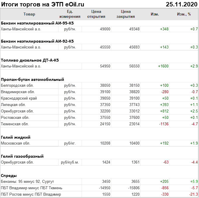 Итоги торгов на ЭТП eOil.ru 25 ноября 2020