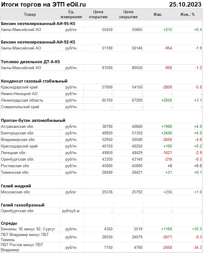 Итоги торгов на ЭТП eOil.ru 25 октября 2023