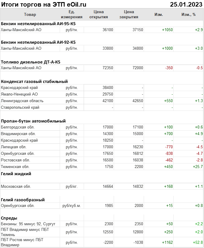 Итоги торгов на ЭТП eOil.ru 25 января 2023