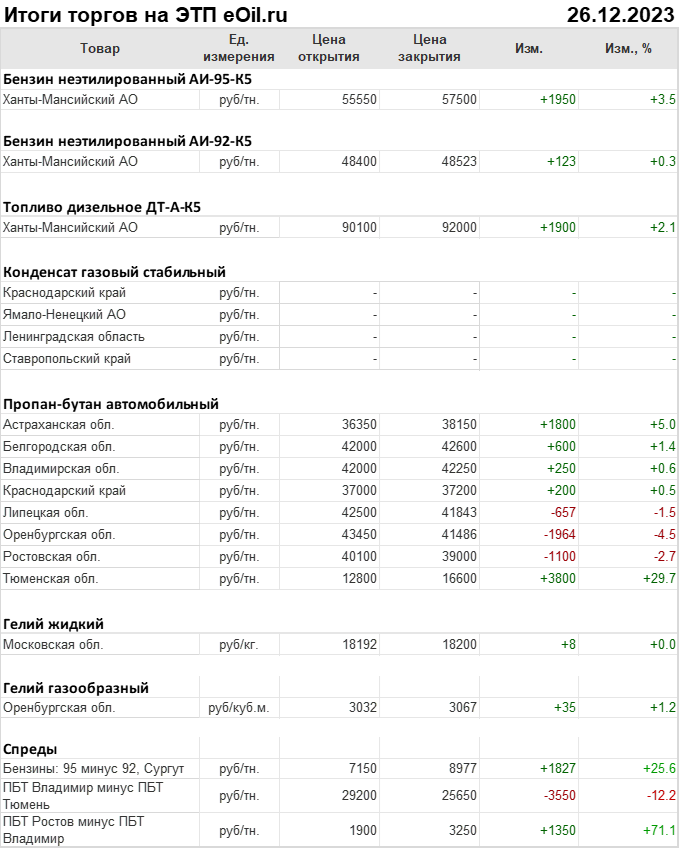 Итоги торгов на ЭТП eOil.ru 26 декабря 2023