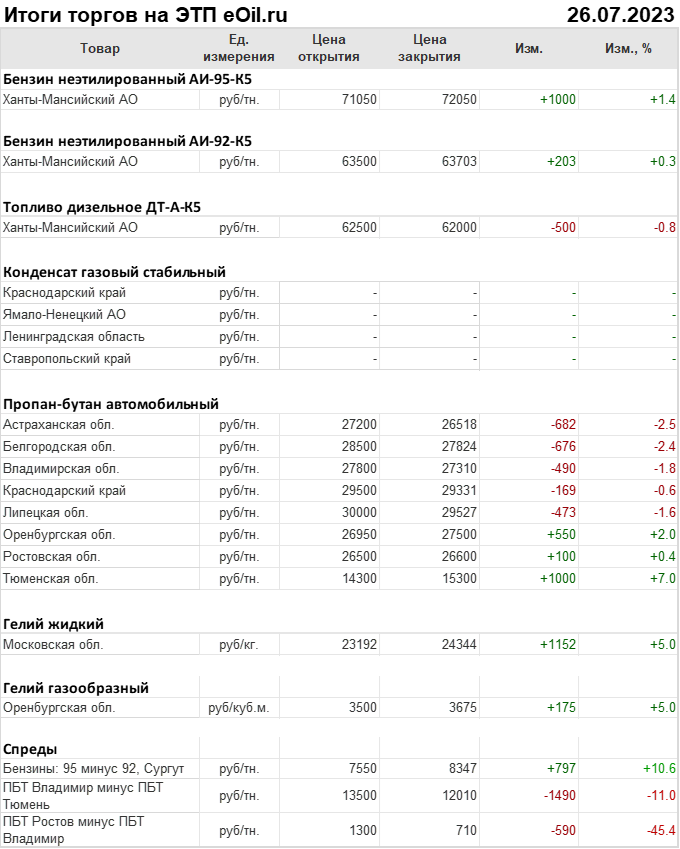 Итоги торгов на ЭТП eOil.ru 26 июля 2023