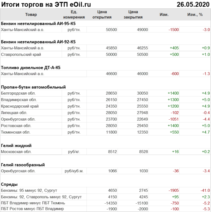 Итоги торгов на ЭТП eOil.ru 26 мая 2020
