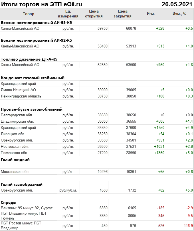 Итоги торгов на ЭТП eOil.ru 26 мая 2021