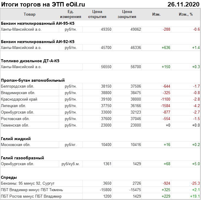 Итоги торгов на ЭТП eOil.ru 26 ноября 2020