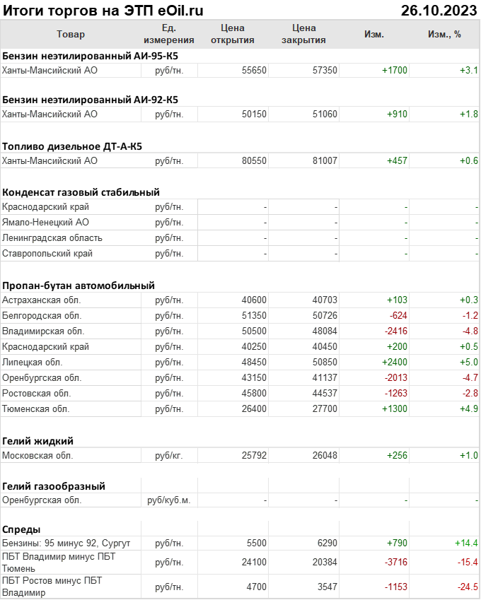 Итоги торгов на ЭТП eOil.ru 26 октября 2023