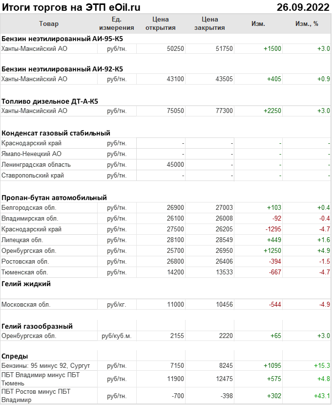 Итоги торгов на ЭТП eOil.ru 26 сентября 2022