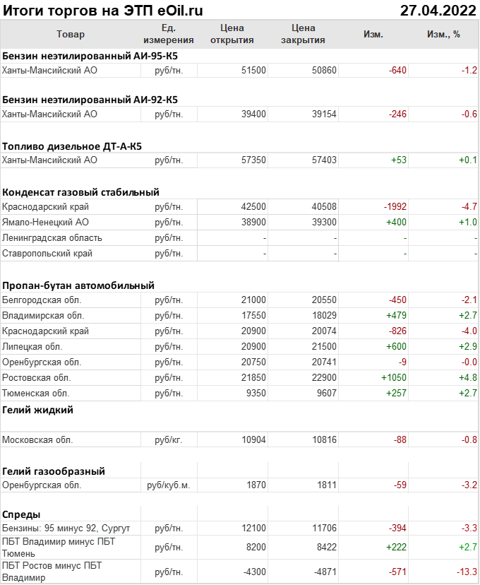 Итоги торгов на ЭТП eOil.ru 27 апреля 2022