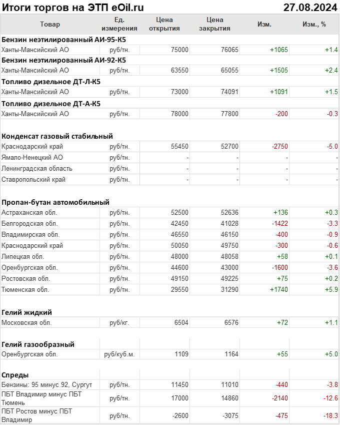 Итоги торгов на ЭТП eOil.ru 27 августа 2024
