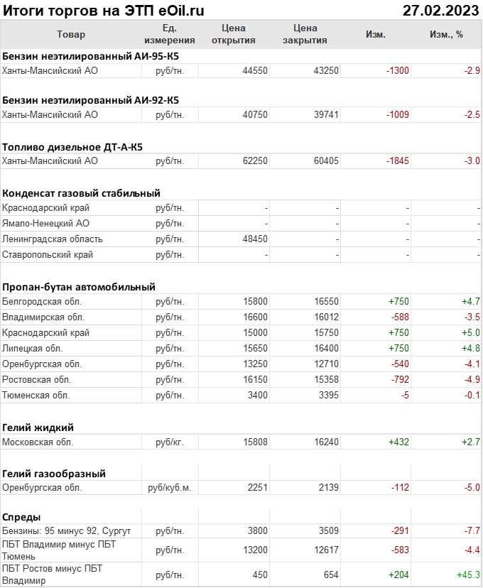 Итоги торгов на ЭТП eOil.ru 27 февраля 2023
