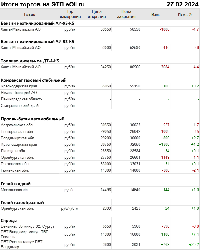 Итоги торгов на ЭТП eOil.ru 27 февраля 2024
